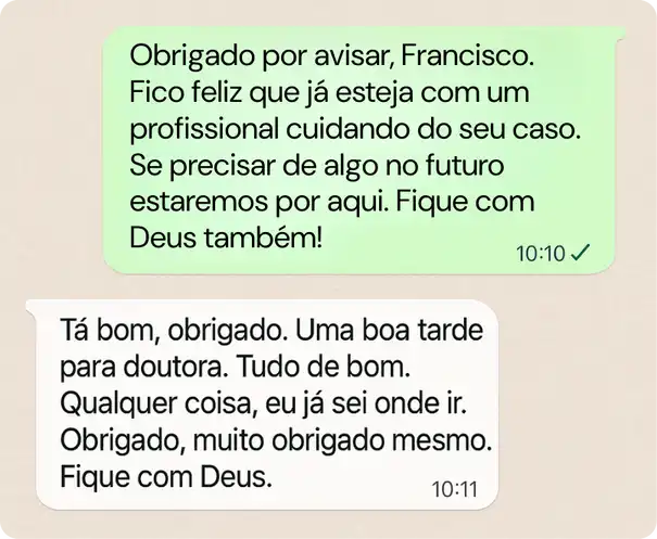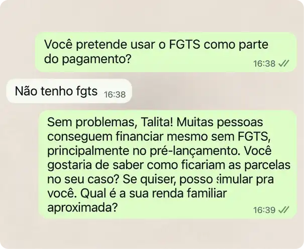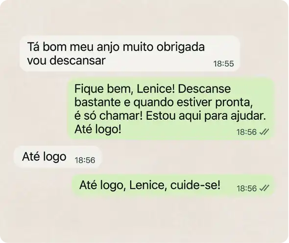 Fala como gente, não como robô. Cada cliente é tratado com empatia e foco na conversão.